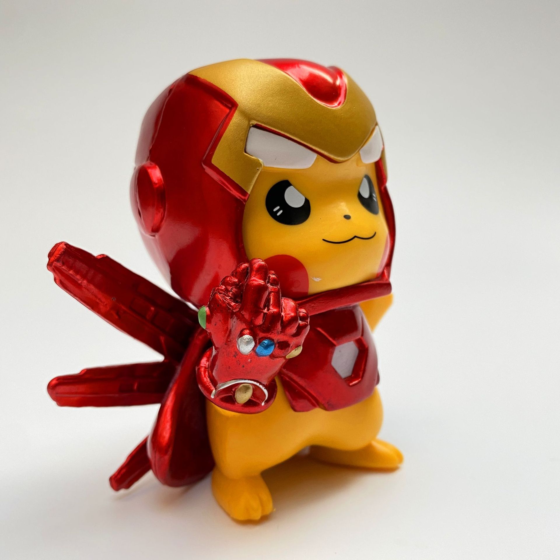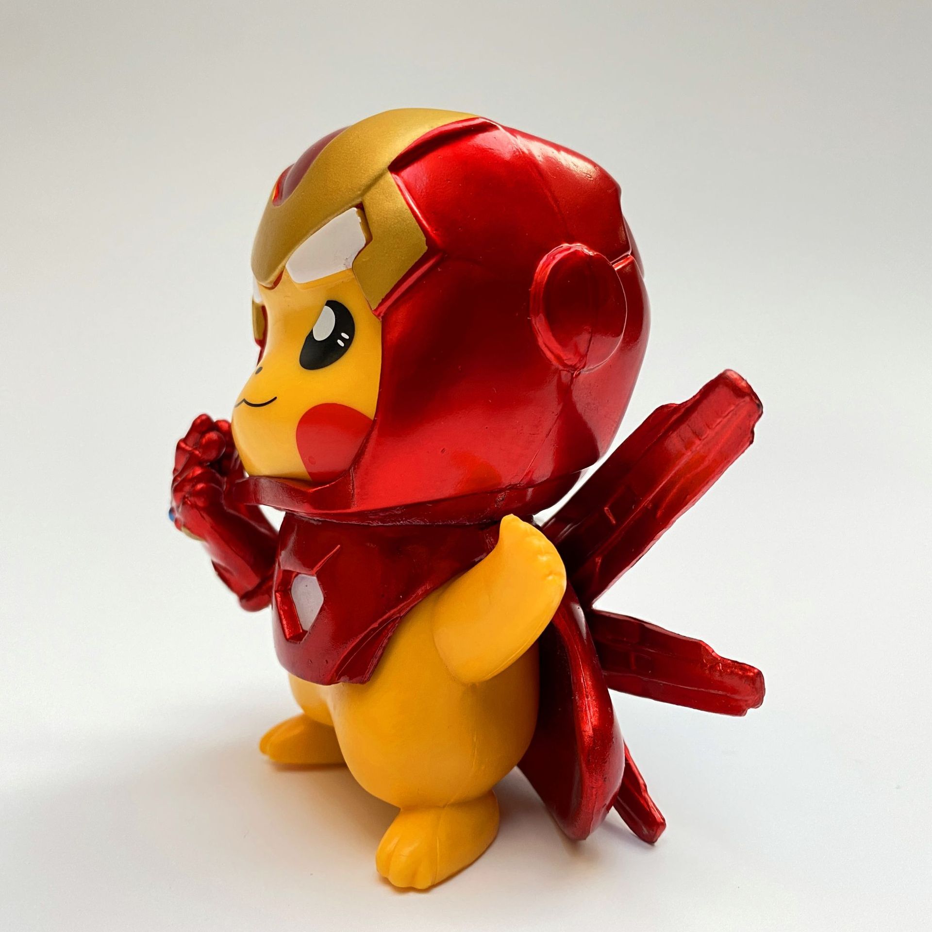 là phiên bản đặc biệt và sáng tạo, kết hợp giữa sự dễ thương của Pikachu trong Pokémon và sự mạnh mẽ, công nghệ cao của Iron Man trong vũ trụ siêu anh hùng. Trong diện mạo này, Pikachu khoác lên bộ giáp đỏ-vàng đặc trưng, có đèn ngực phát sáng và phong cách đầy cá tính. Dù vẫn giữ gương mặt thân thiện và năng lượng điện quen thuộc, phiên bản này mang đến hình ảnh mới lạ, hài hước và cực kỳ cuốn hút với fan cả hai thế giới.